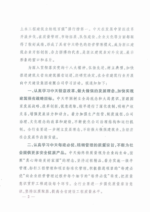 《浙江省住房和城乡建设厅关于在全省建筑行业开展向9001DCC金沙建设集团有限公司学习活动的通知》